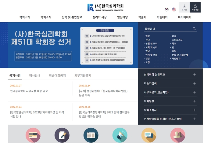 투고자, 심사위원, 편집위원, 학회관리자를 위한 관리 기능들이 있습니다.